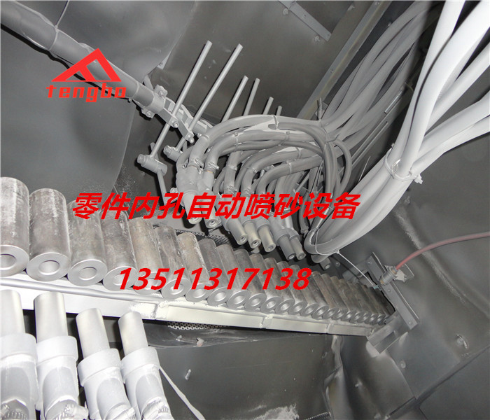 機器 內 尺寸:1000*00*900(MM) 機器照明燈:220V 13W節能燈 除塵 箱 尺寸:1400*1400*2300(MM) 除塵風機功率:380V/50HZ/5KW 工作壓力:5-7bar(kg/cm2) 噴槍數量:6-16把 除塵方式:袋式除塵箱,利用氣動自動/手動除塵 空氣源要求:壓力7BAR(kg/平方米)單槍流量1.5-3.0立方米/min 適用范圍:最大直徑不超過60MM,最小直徑不小于10mm的各類圓柱形產品內孔噴砂處理(如去毛邊、去毛刺)及電鍍、噴涂的前處理,提高附著力;提高產品質量及檔次。 |